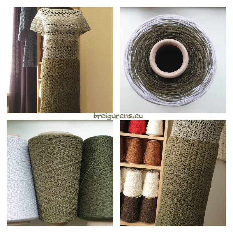 Later heb ik er een jurkje van gehaakt. Bovenaan begonnen en rondgehaakt totdat de 400 gram op was.